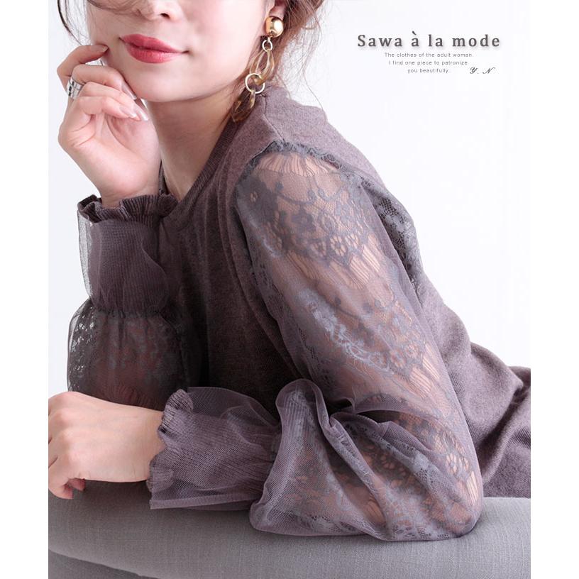 レディース トップス ニット 長袖 グレー レース チュール キャンディスリーブ 春服 秋服 冬服 シアー サワアラモード 大人 可愛い 洋服 30代 40代 50代 60代 Mode 6455 Sawa A La Mode サワアラモード 通販 Yahoo ショッピング